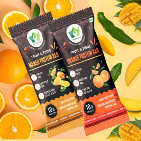 WellMonk Premium Protein Bars (Orange & Mango) – Pack of 6 | High Protein, Rich in Fruit & Fiber | Healthy Snack for Energy & Fitness