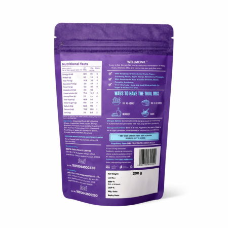 WellMonk Trail Mix – Berries & Nuts, Antioxidant-Rich Snack, 200g
