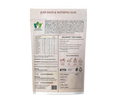 WellMonk Date Powder 500g- 100% Pure Dehydrated Dates, Natural Sweetener, No Preservatives