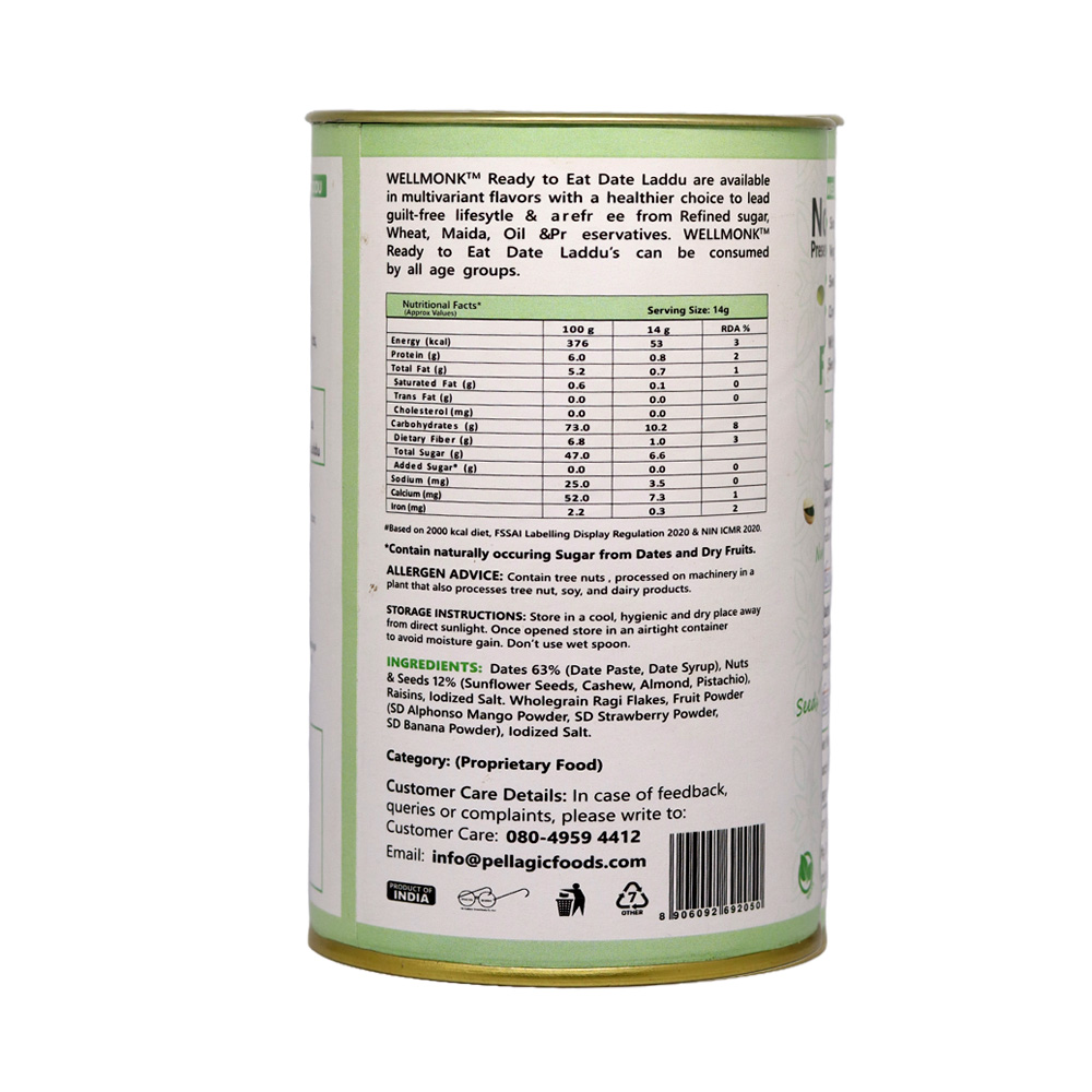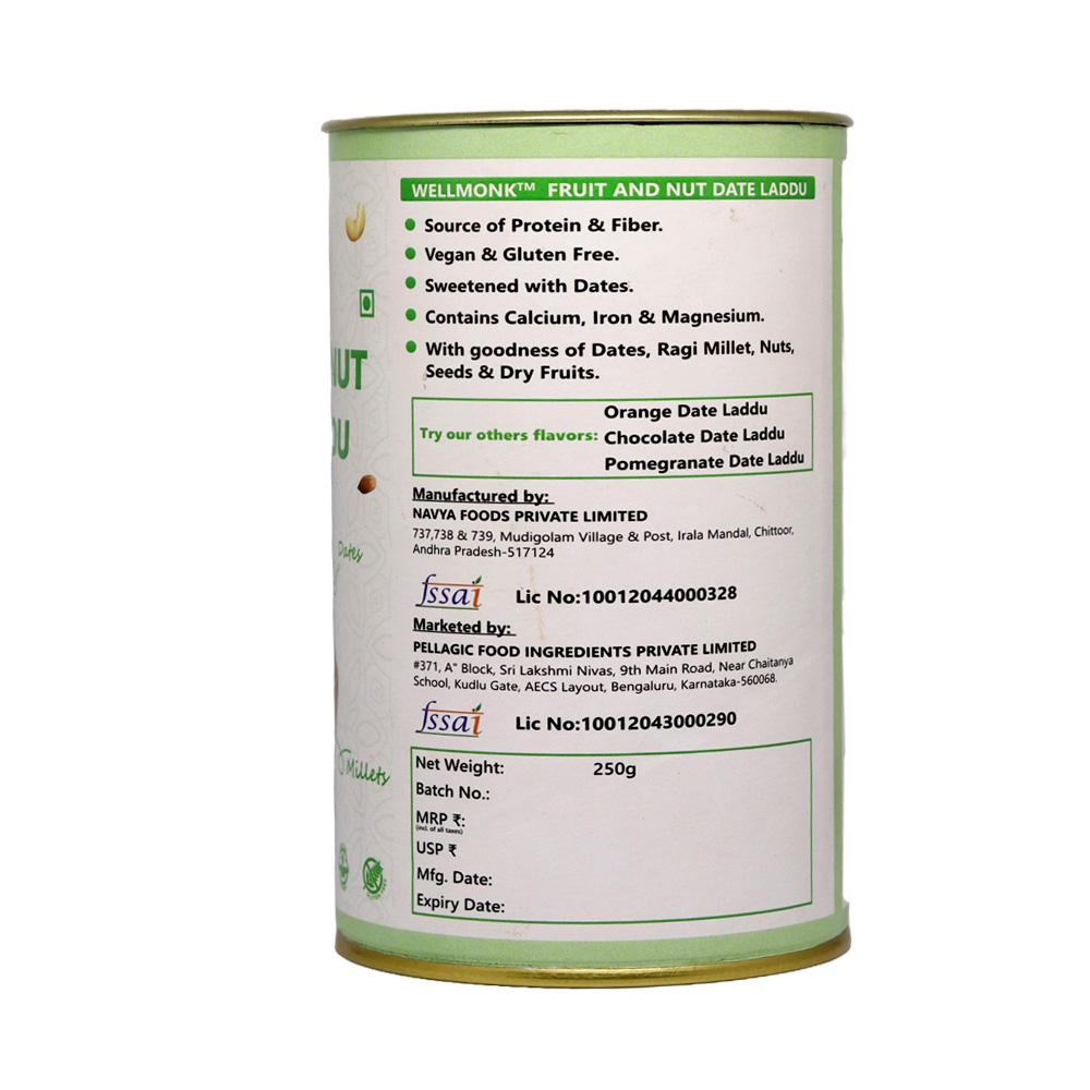Satisfy your sweet cravings guilt-free with WellMonk Fruit & Nut Date Laddu, a wholesome treat crafted with the goodness of natural ingredients. Perfect for anytime snacking or a healthy dessert option, these laddus bring together the richness of dates and the crunch of Fruit & Nut with seeds.