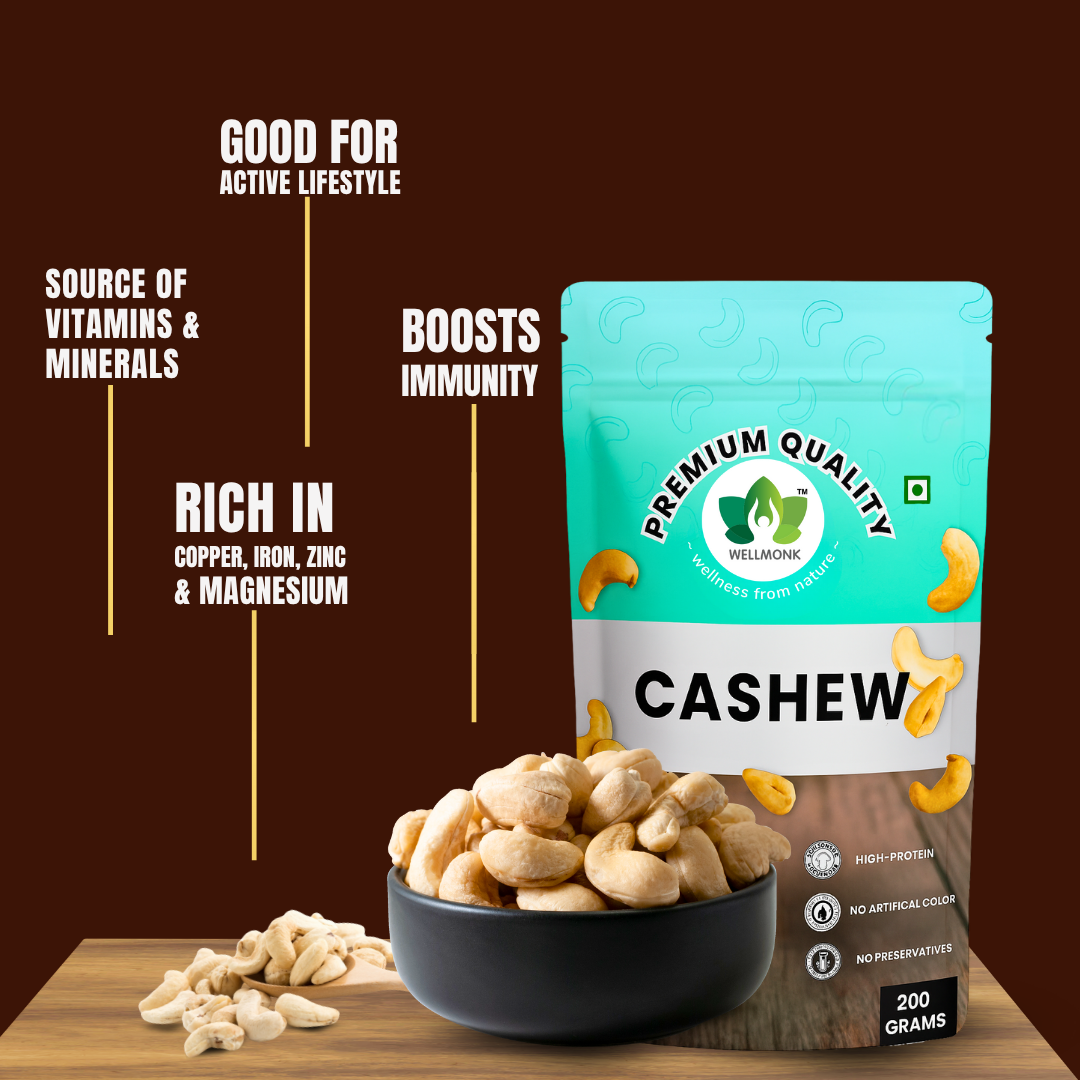 Enjoy the goodness of WellMonk Cashews β a premium dry fruit for every occasion.