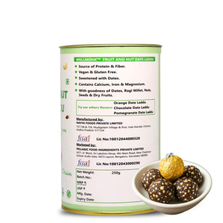 WellMonk Fruit & Nut Date Laddu – Nutritious & Delicious Energy Snack, Packed with Natural Ingredients, 250g | 18 Laddu pack