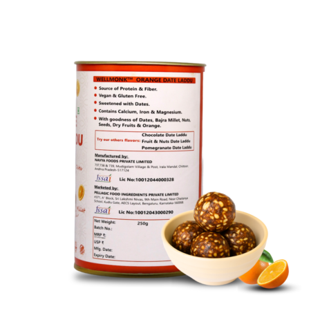 WellMonk Orange Date Laddu – Nutritious & Delicious Energy Snack, Packed with Natural Ingredients, 250g | 18 Laddu pack