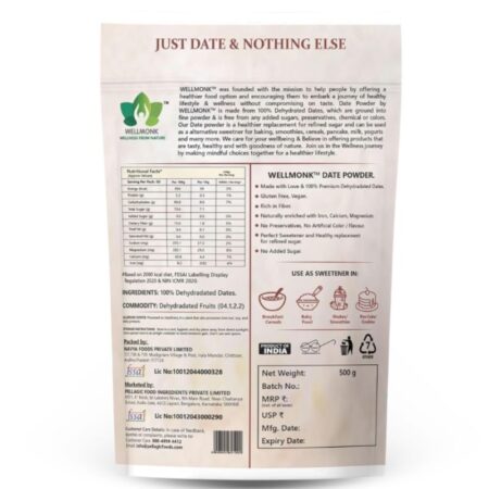 WellMonk Date Powder 500g- 100% Pure Dehydrated Dates, Natural Sweetener, No Preservatives